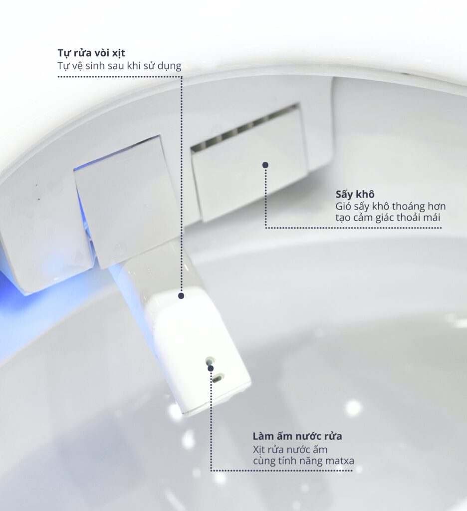 • Chức năng làm ấm nắp ngồi, làm ấm nước rửa