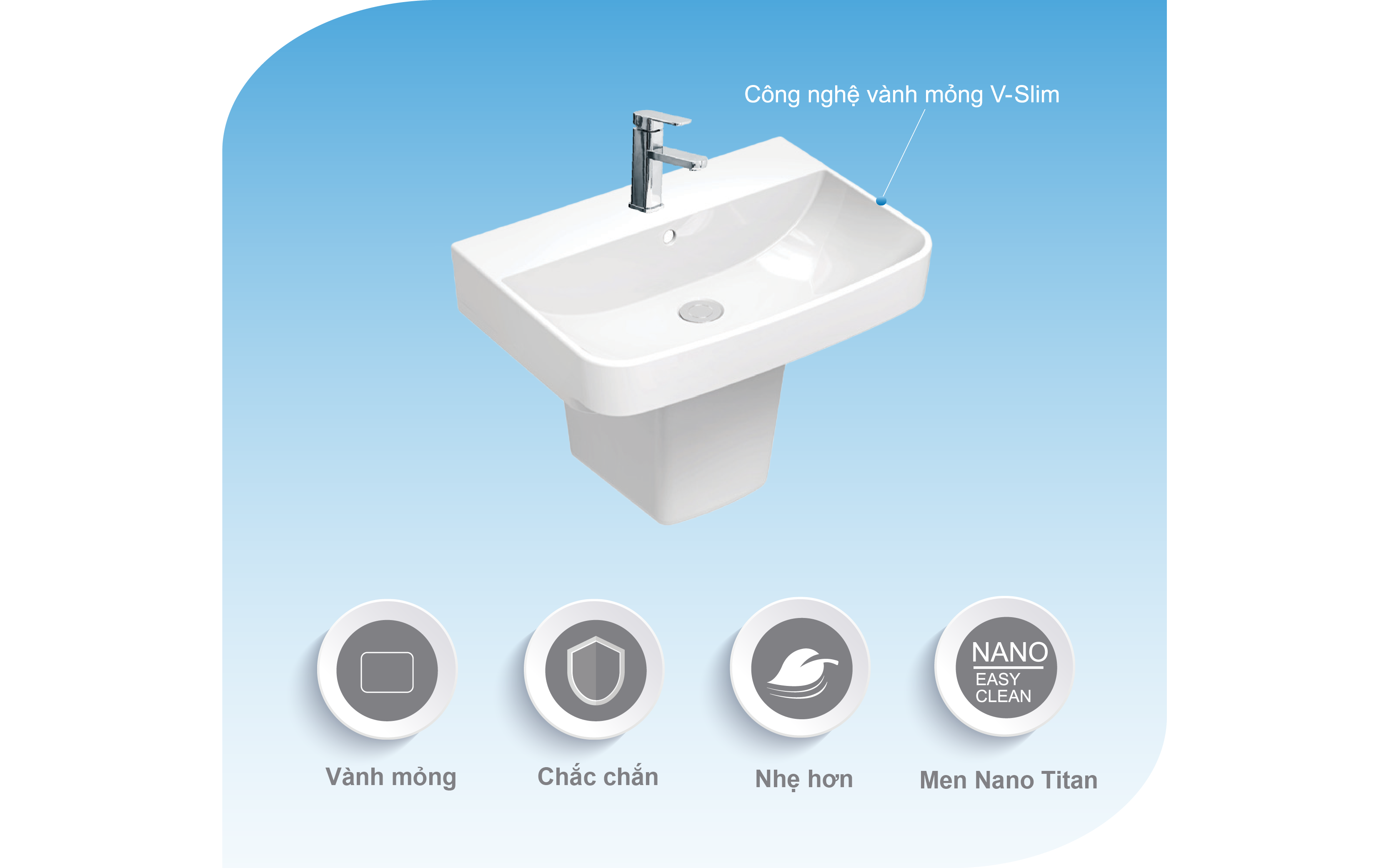 Chậu rửa CD58 nằm trong bộ sưu tập V-Slim của Viglacera. Với thiết kế vành mỏng tinh tế, tối giản và thanh lịch, V-Slim mang đến nét thẩm mỹ hiện đại cho phòng tắm và những trải nghiệm tiện nghi cho người sử dụng. Sản phẩm đã định nghĩa lại xu hướng thẩm mỹ của phòng tắm hiện đại: Mỏng nhẹ, thời thượng, công năng toàn diện, tiết giảm nguồn tài nguyên thiên nhiên, hướng đến sự phát triển bền vững.