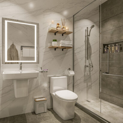 Phần lòng chậu rộng rãi, kết hợp thành chậu cao, đế bằng hoặc vát nghiêng nhằm hạn chế bắn nước, giữ cho nhà tắm luôn sạch sẽ và khô ráo. Vành chậu mỏng giúp người dùng tận hưởng không gian sử dụng lớn hơn so với các sản phẩm có kích thước tương tự.