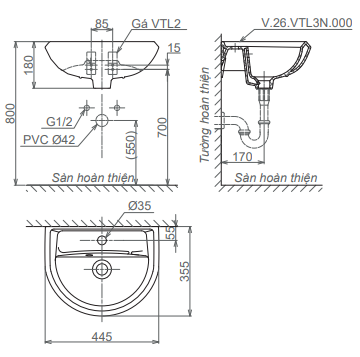 CHẬU RỬA TREO TƯỜNG VTL3N
