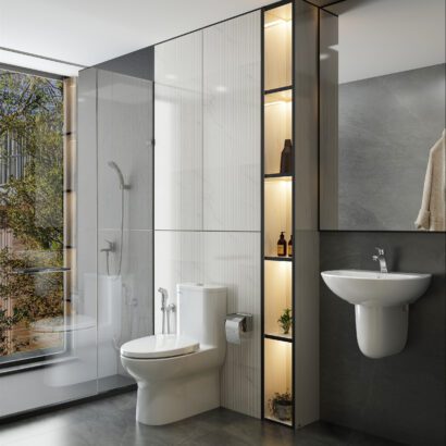 - Thiết kế treo tường giúp tiết kiệm không gian tối đa và dễ dàng vệ sinh.