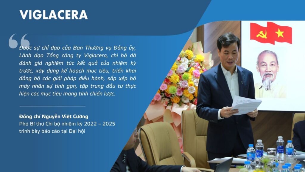 Phát biểu tại đại hội, đồng chí Quách Hữu Thuận đánh giá Chi bộ Ban Thương mại là một trong những chi bộ thành lập tiên phong sau khi tái cơ cấu, sáp nhập công tác kinh doanh của ngành hàng Sứ vệ sinh & Sen vòi nói riêng và các đơn vị thành viên của Tổng công ty Viglacera nói chung với đội ngũ đảng viên cốt cán.