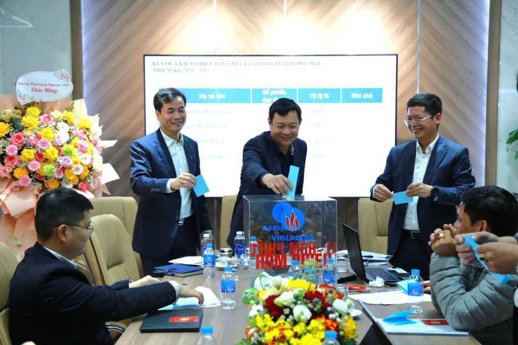 Đại hội cũng nhất trí bầu ra 03 đại biểu chính thức đi dự Đại hội Đại biểu lần thứ XVI Đảng bộ Tổng công ty Viglacera – CTCP là đồng chí Nguyễn Việt Cường, đồng chí Nguyễn Xuân Đồng, đồng chí Lê Thị Bảo Vinh. Đồng chí Bùi Thị Thanh Nhàn được bầu làm đại biểu dự khuyết.
