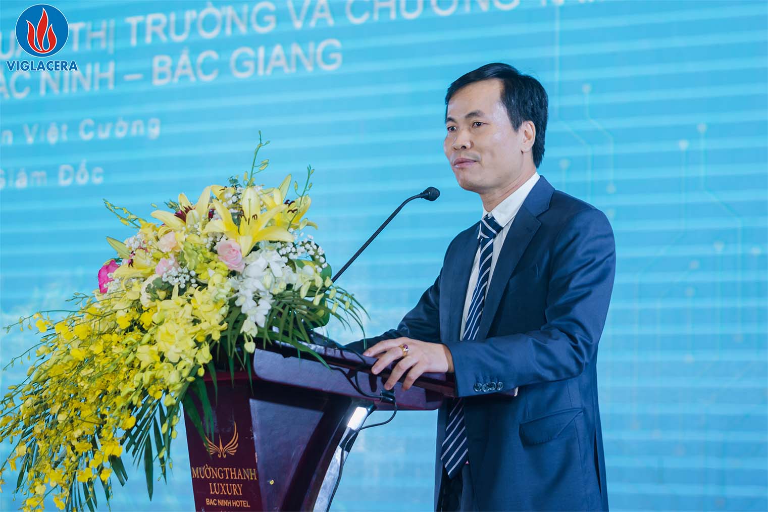 Ông Nguyễn Việt Cường – Phó tổng giám đốc Công ty CP Thương mại Viglacera, phát biểu về tổng quan thị trường kinh doanh sứ vệ sinh sen vòi cùng như chính sách kinh doanh năm 2022