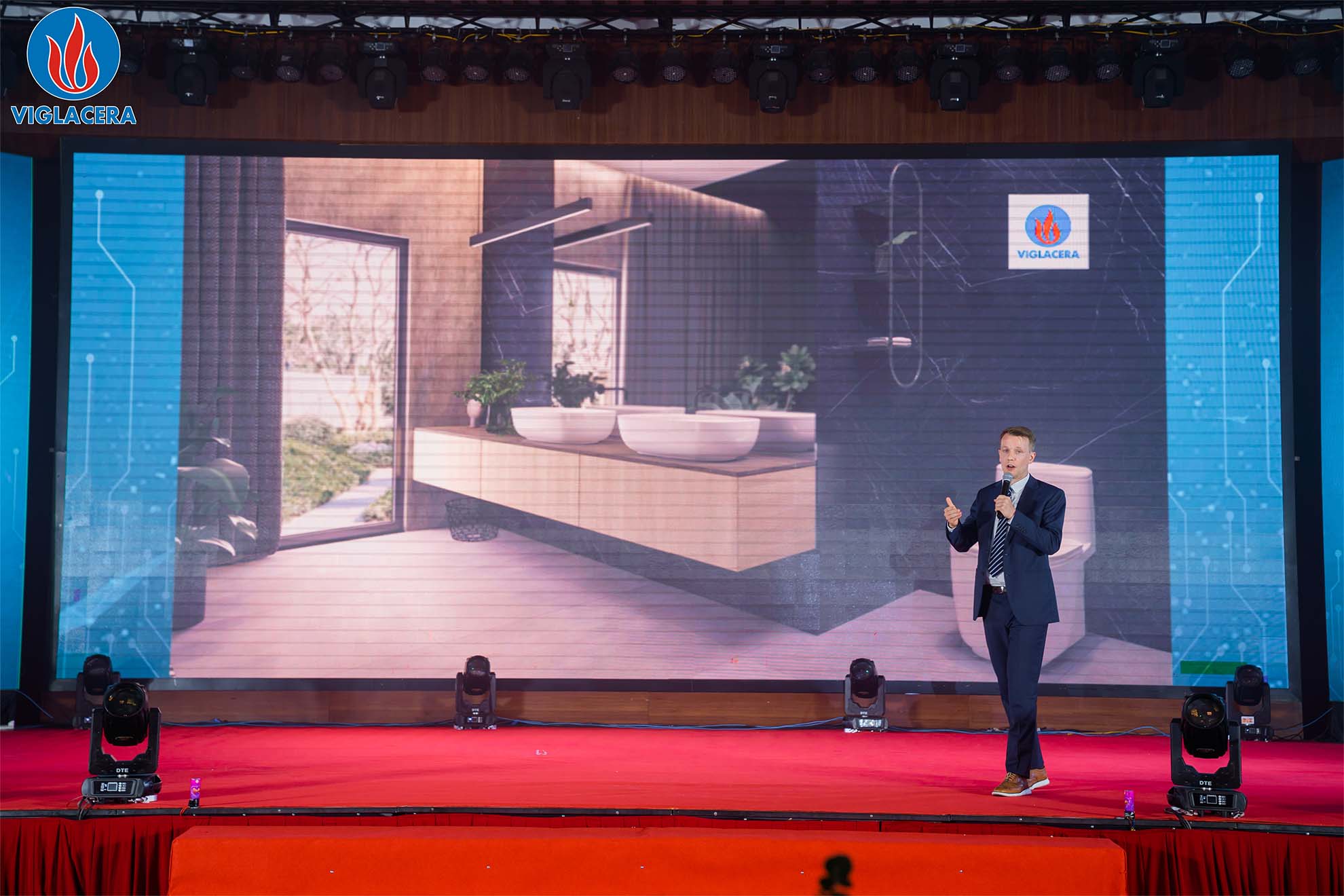 Ông Johannes Heikkila – Giám đốc phát triển thương hiệu & hợp tác quốc tế, phát biểu về xu hướng hội nhập của Viglacera và các thành tựu thông qua sự hợp tác quốc tế