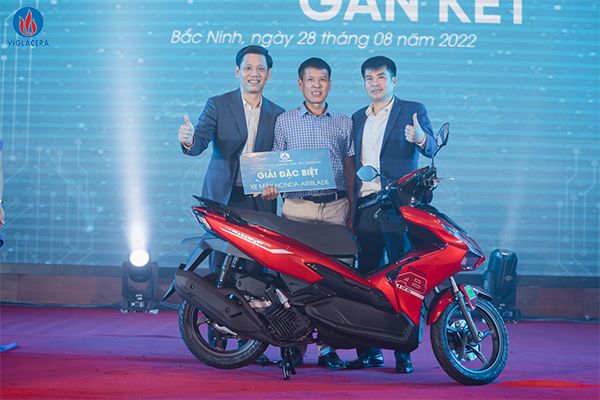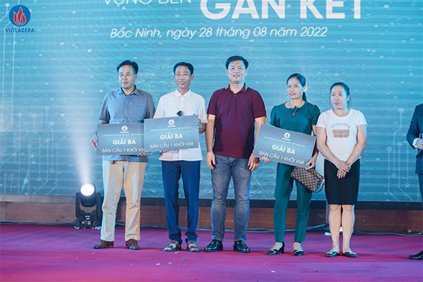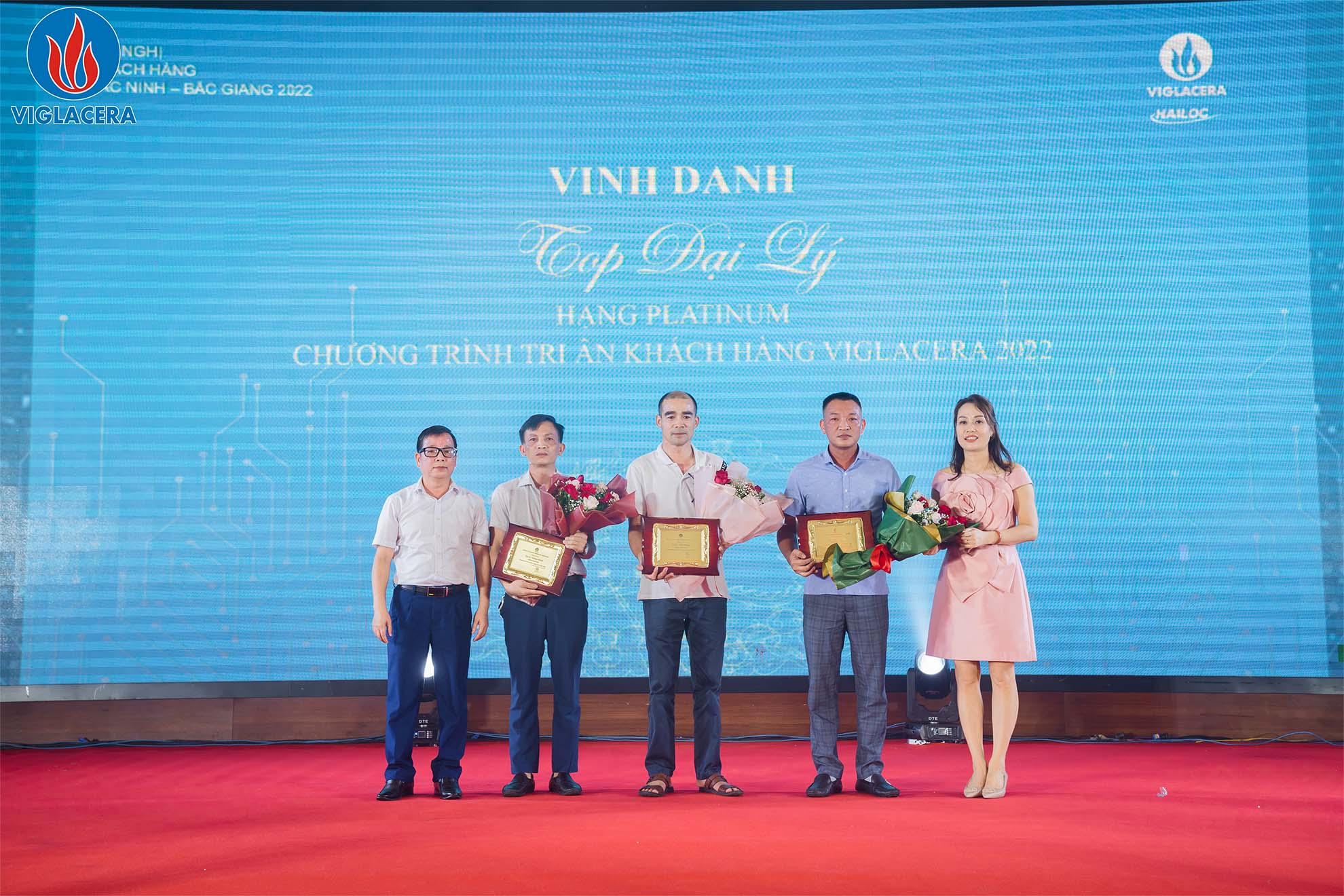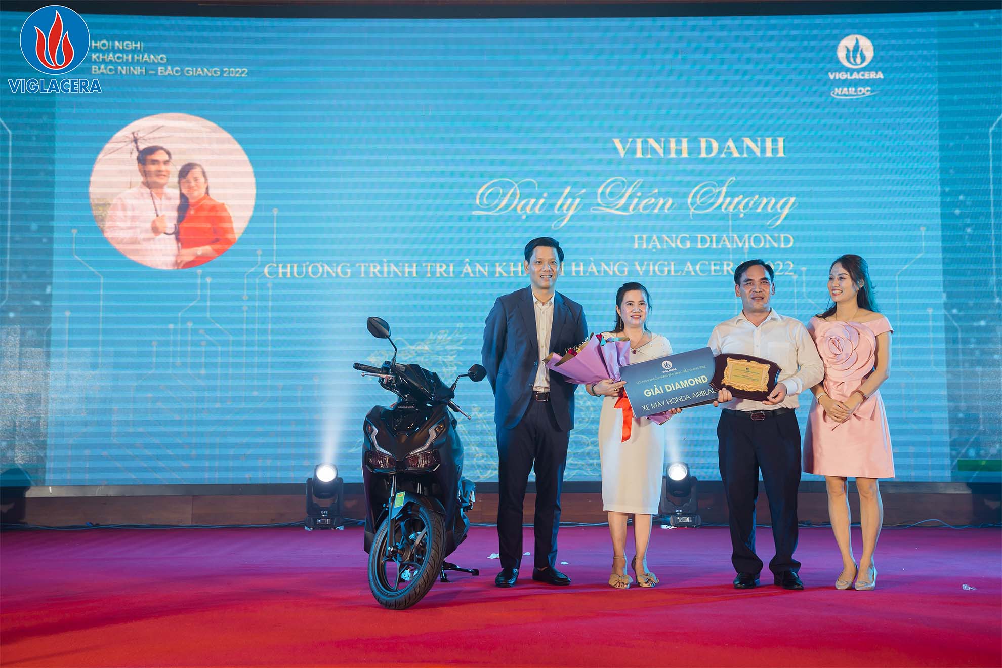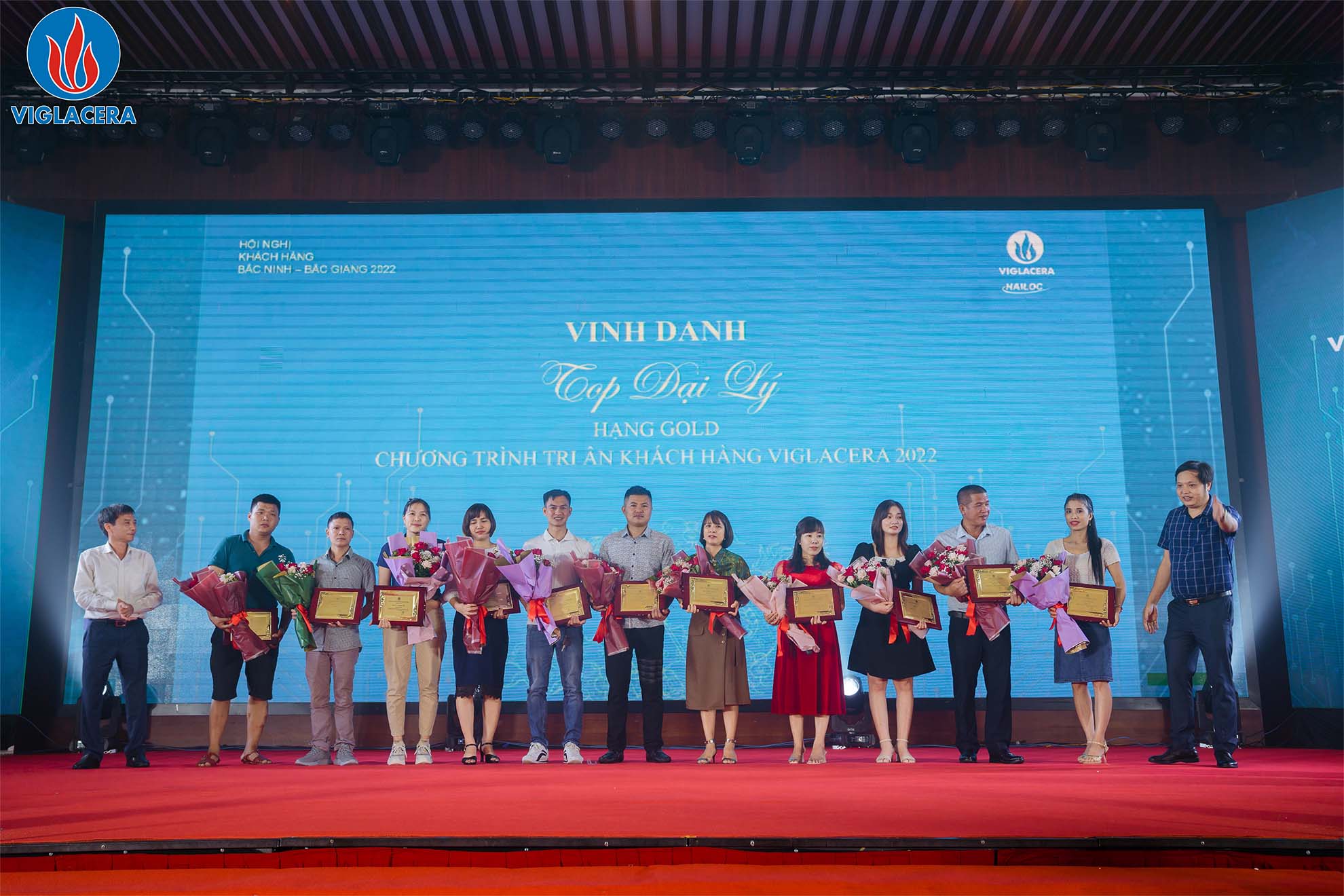 Như một lời tri ân đặc biệt đến các Đại lý, Cửa hàng thị trường Bắc Ninh – Bắc Giang, nhân sự kiện Hội nghị khách hàng Bắc Ninh 2022, Công ty CP Thương mại Viglacera đã vinh danh top các Cửa hàng, Đại lý thông qua kết quả kinh doanh trong chương trình Bán hàng mùa hè 2022, với 4.000 bộ sản phẩm đã được đông đảo các quý Cửa hàng, Đại lý ủng hộ. Trong đó, có 21 đại lý được tặng thưởng cấp độ Gold với 21 chỉ vàng SJC; 3 Đại lý nhận giải thưởng cấp Platinum, mỗi đại lý nhận được 2 chỉ vàng SJC; và cuối cùng là 1 chiếc xe máy Honda AirBlade dành cho Cửa hàng Đại lý đạt cấp độ Diamond.