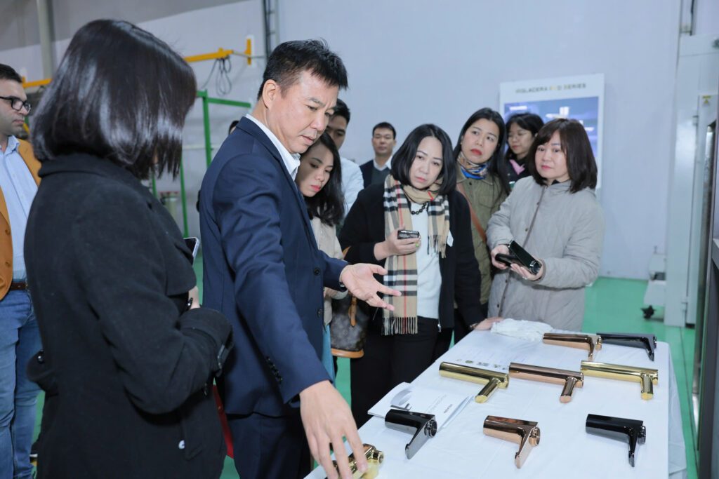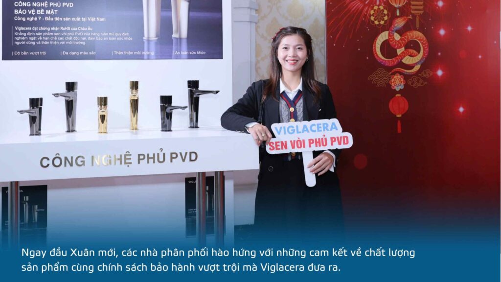 Trong hai ngày mùng 8 và 9/2, các nhà phân phối của Viglacera đã có chuyến du xuân kết hợp tham quan Nhà máy Sứ Việt Trì Viglacera và Nhà máy Sen vòi Viglacera tại miền Bắc – 2 trong số 5 nhà máy sản xuất chủ lực ngành hàng thiết bị vệ sinh của Viglacera trên cả nước. Tại đây, Viglacera tự tin giới thiệu những cập nhật công nghệ mới nhất trong sản xuất sứ vệ sinh và sen vòi. Đây tiếp tục là bước hiện thực hóa cam kết giữ vững ngọn cờ Tiên phong trong đổi mới và phát triển bền vững mà TCT luôn kiên định trong suốt hàng chục năm qua. Và việc ra mắt sản phẩm sen vòi phủ PVD vào thời điểm chào năm mới 2025 cùng lời tuyên bố sẽ tiếp tục triển khai hàng loạt những bước đổi mới công nghệ mang tính căn bản khác cho cả lĩnh vực sản xuất sứ vệ sinh đã ngay lập tức tạo ra sự hứng khởi đối với các nhà phân phối. Điều này đáp ứng đúng và trúng nguyện vọng của các nhà phân phối, mà nói như ông Bùi Văn Hà – đại diện Nhà phân phối Mạnh Thắng khi phát biểu tại sự kiện: “Chúng tôi luôn chờ mong được đồng hành cùng những sản phẩm cao cấp, xứng tầm vị thế Viglacera”.