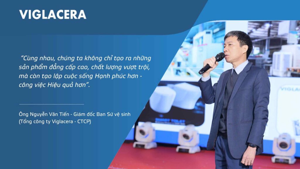 Ông Nguyễn Văn Tiến – Giám đốc Ban Sứ vệ sinh (Tổng Công ty Viglacera – CTCP) chia sẻ tại sự kiện: “Cùng nhau, chúng ta không chỉ tạo ra những sản phẩm đẳng cấp cao, chất lượng vượt trội, mà còn tạo lập cuộc sống hạnh phúc hơn – công việc hiệu quả hơn”