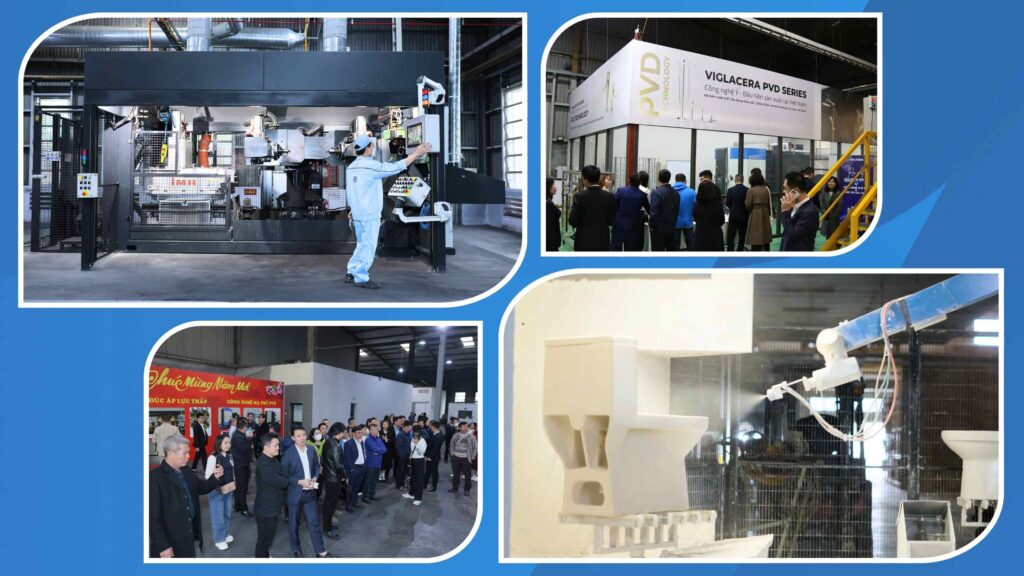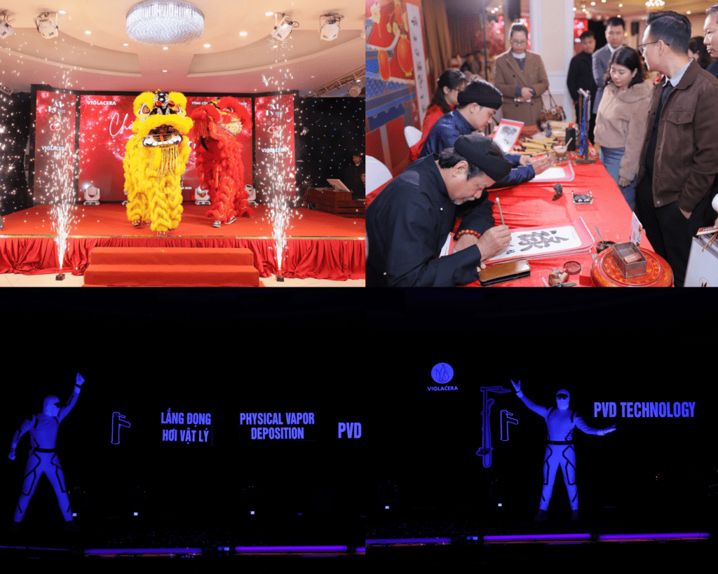Là sự kiện Chào Xuân thường niên, nhưng chương trình năm nay trở nên đặc biệt hơn khi Viglacera chính thức ra mắt hai dây chuyền công nghệ hiện đại bậc nhất thế giới – công nghệ đúc áp lực thấp bằng điện và phủ bảo vệ bề mặt PVD trong sản xuất sen vòi. Đây không chỉ là dấu ấn công nghệ thể hiện những nỗ lực bứt phá của Viglacera trong việc nâng tầm sản phẩm sen vòi “made in Vietnam” sánh vai với những thương hiệu hàng đầu thế giới, mà còn khẳng định ý chí quyết tâm bứt phá của người Viglacera trong “kỷ nguyên vươn mình” cùng đất nước.