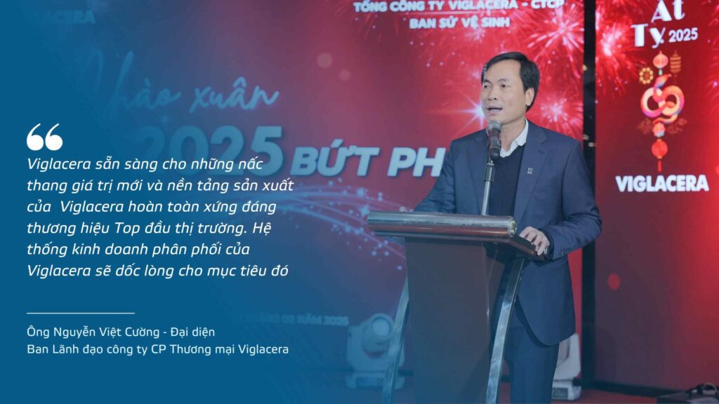 Ông Nguyễn Việt Cường, đại diện ban lãnh đạo Công ty CP Thương mại Viglacera khẳng định: “2025 là năm tiền đề cho những thay đổi sâu sắc của thương hiệu thiết bị vệ sinh Viglacera. Với những tác động lớn từ Chính phủ, tình hình địa chính trị thế giới cùng sự chuẩn bị mang đầy tính chiến lược của Viglacera, tôi tin chúng ta sẽ đạt những thành công rất lớn, sẵn sàng cho những nấc thang giá trị mới và đưa Viglacera trở thành thương hiệu top đầu của thị trường”.