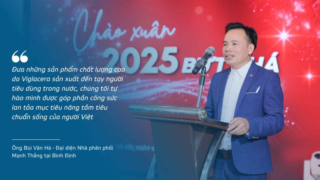 Ông Bùi Văn Hà – Đại diện Nhà phân phối Mạnh Thắng tại Bình Định: “Đưa những sản phẩm chất lượng cao do Viglacera sản xuất đến tay người tiêu dùng trong nước, chúng tôi tự hào mình được góp phần công sức lan tỏa mục tiêu nâng tầm tiêu chuẩn sống của người Việt”