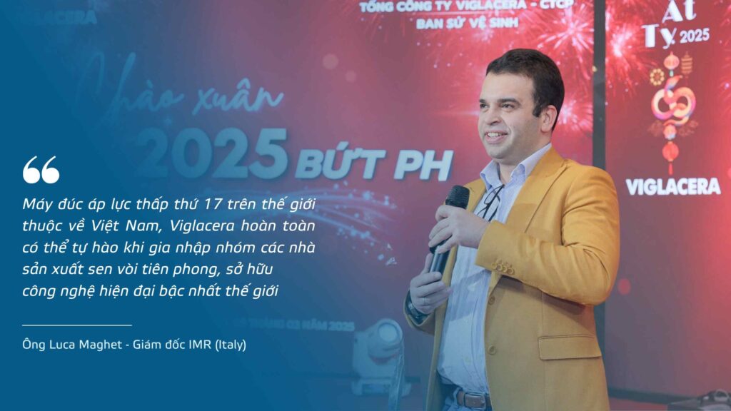 Ông Luca Maghet – Giám đốc điều hành Công ty IMR Engineering & Technologies S.R.L (Italy) chia sẻ: “Trên thế giới, đây là hệ thống máy đúc áp lực thấp bằng điện thứ 17 – và nó chính thức được chuyển về Việt Nam, về Viglacera.” Với bước tiến này, ông khẳng định Viglacera hoàn toàn có thể tự hào khi gia nhập nhóm các nhà sản xuất sen vòi tiên phong, sở hữu công nghệ hiện đại bậc nhất thế giới.