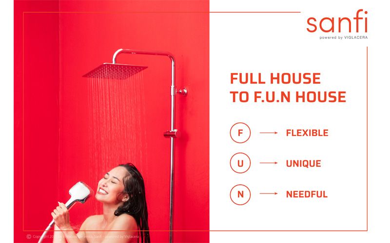 Với định hướng phát triển mới, Sanfi đổi mới với concept “Full House to F.U.N House”, thể hiện một tư duy mới về ứng dụng thiết bị nhà tắm – vượt xa việc đáp ứng nhu cầu thông thường là “chỉ cần đủ dùng” – F.U.N không chỉ có ý nghĩa là niềm vui mà còn là sự đáp ứng đa nhiệm trong đời sống. Sanfi cung cấp giải pháp toàn diện cho những khách hàng trẻ khó tính với yêu cầu về những sản phẩm thiết bị đa nhiệm – từ đó tạo nên một phong cách sống độc đáo, vui vẻ, thông minh dù khởi đầu cho cuộc sống mới còn nhiều hạn chế – cảm hứng sống trẻ.