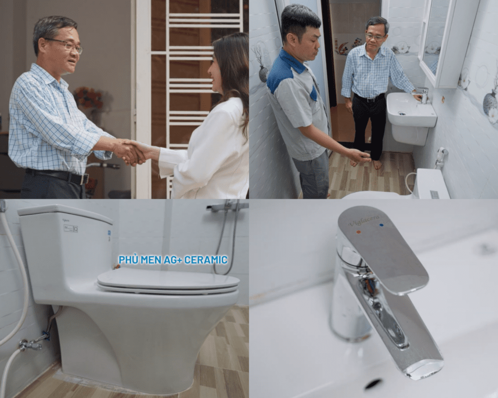 Đối với kỳ vọng từ gia đình anh Nhơn, đội ngũ kỹ thuật viên Viglacera đã lắp đặt bàn cầu một khối HL2, ứng dụng công nghệ phủ Nano AG+ Ceramic kháng khuẩn lên tới 89%, làm sạch và khử mùi ẩm mốc. Vòi nước được chế tác từ đồng thau nhập khẩu với lớp mạ sáng bóng, van điều khiển nhập khẩu từ Châu Âu có độ bền cao, chống rò rỉ và chịu mọi áp lực nước.