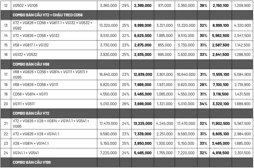 BẢNG GIÁ ÁP DỤNG CHO VOUCHER (Giảm thêm 10% trên giá của tờ rơi)