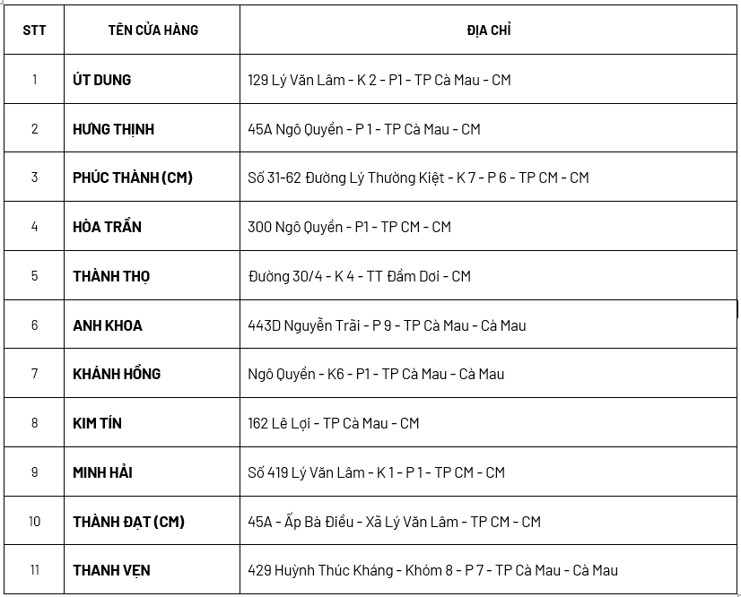 DANH SÁCH CỬA HÀNG MUA HÀNG BẰNG VOUCHER