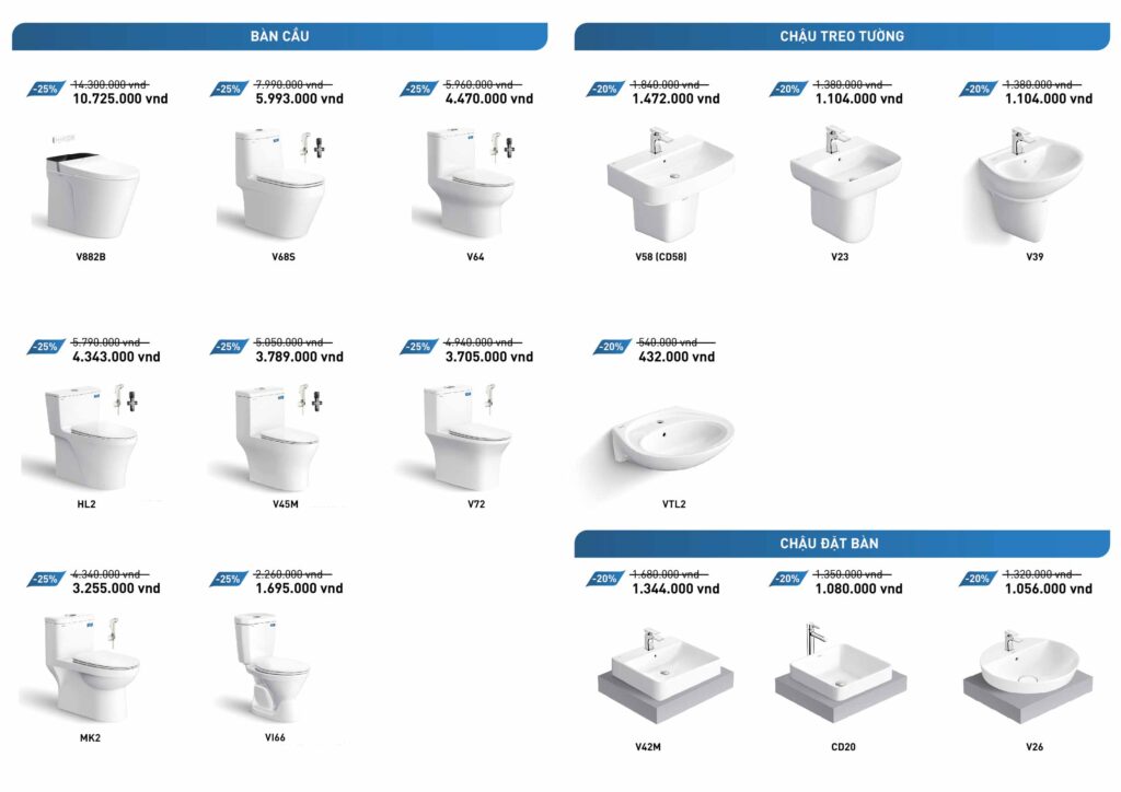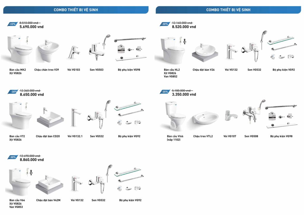 • Combo Thiết bị vệ sinh: giảm từ 30% – 50%