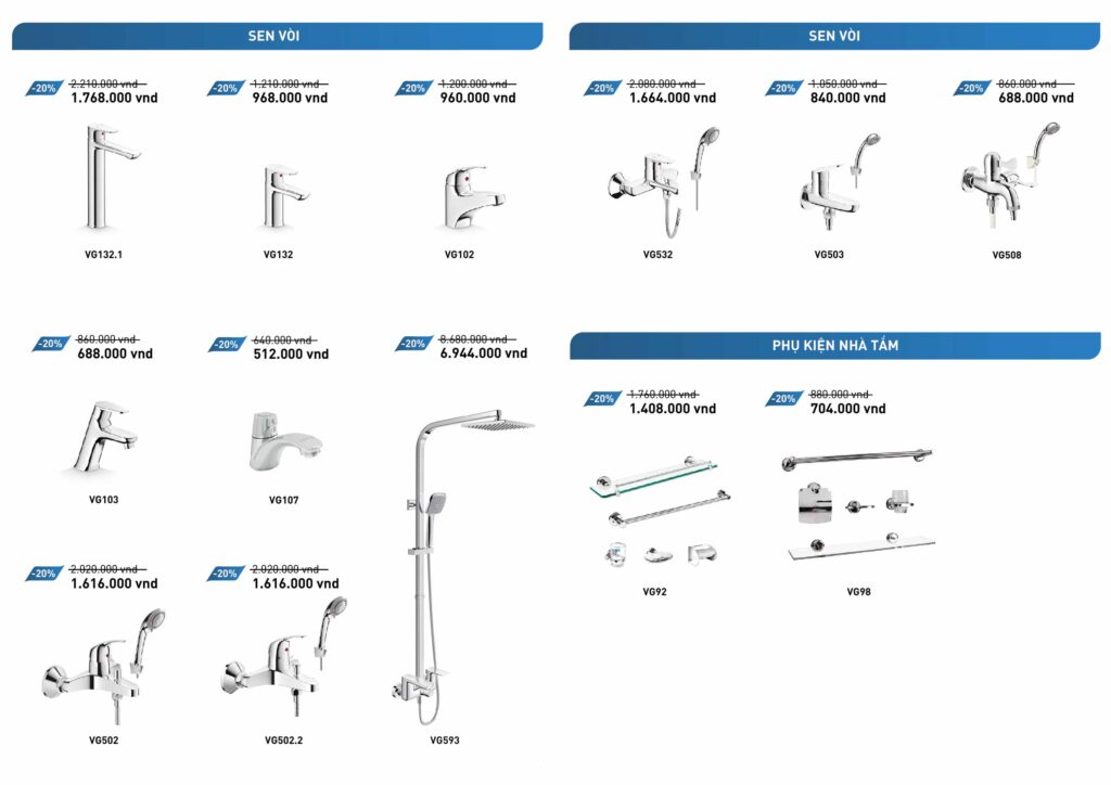 • Vòi rửa, sen tắm và các phụ kiện phòng tắm: giảm từ 20%.