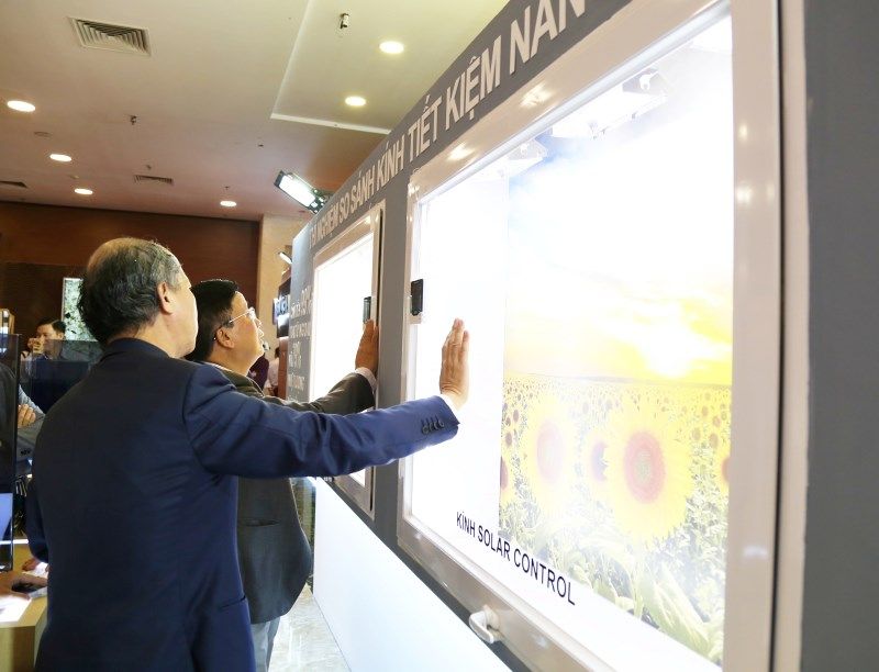 Ông Nguyễn Hồng Quân – Nguyên Bộ trưởng Bộ Xây dựng tìm hiểu các thông tin về Kính tiết kiệm năng lượng Viglacera