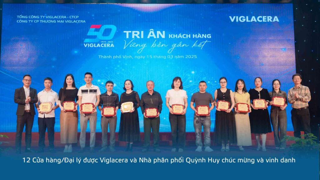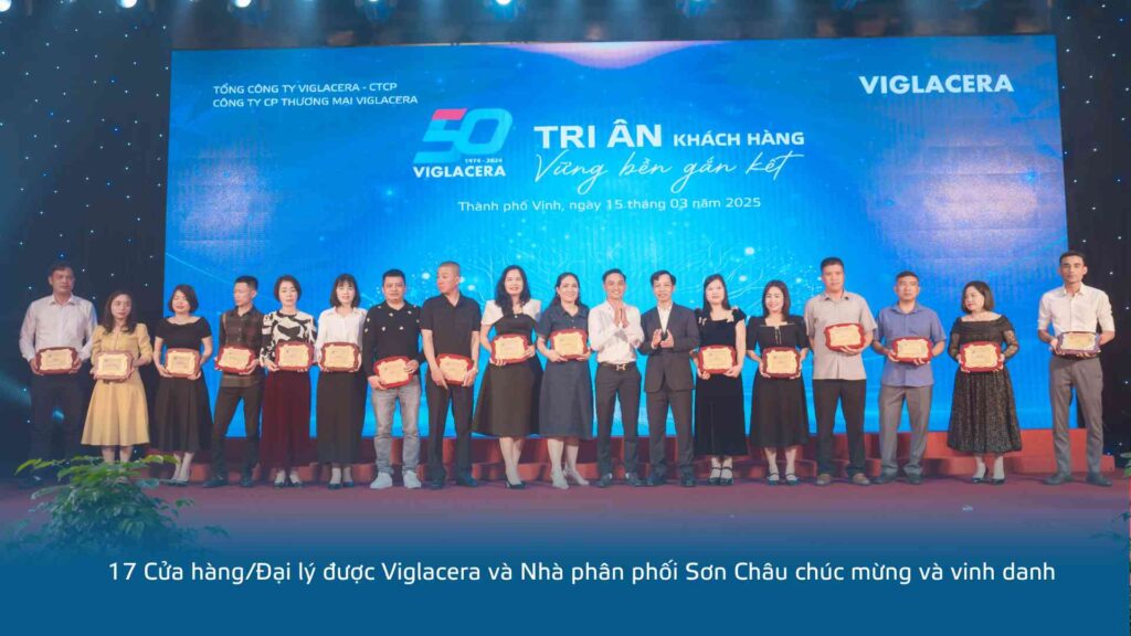 Tại hội nghị, Viglacera cùng Nhà phân phối Sơn Châu và Nhà phân phối Quỳnh Huy đã vinh danh các đại lý, cửa hàng tiêu biểu có thâm niên nhiều năm gắn bó với thương hiệu, cũng như có thành tích xuất sắc hoàn thành các kế hoạch doanh thu của Viglacera; trở thành những đại sứ kết nối giúp Viglacera đến gần hơn với hàng triệu gia đình Việt.
