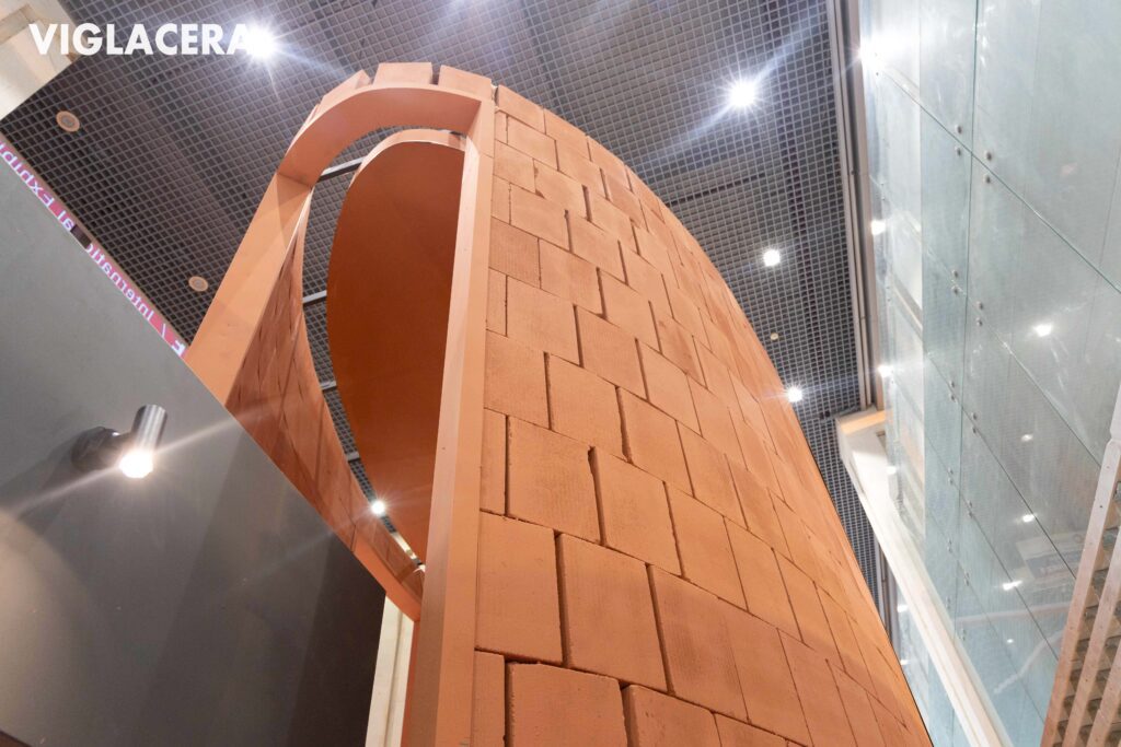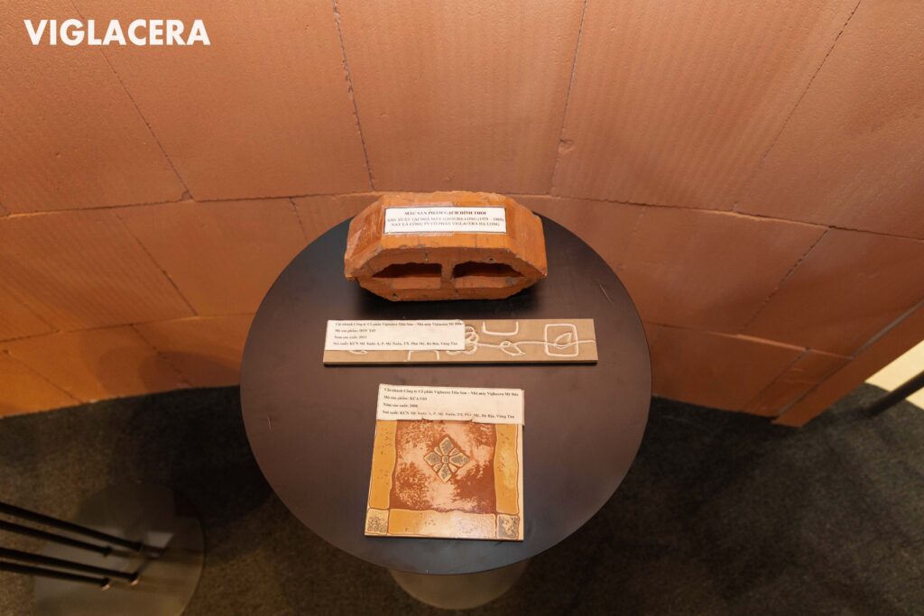 Phần lõi – Biểu tượng của lịch sử: Nằm ở trung tâm Pavilion – khối Elip mang hình ảnh của những lò gạch nung đỏ lửa năm xưa. Không gian trưng bày đặc biệt này được tạo nên từ 1000 viên gạch bê tông khí chưng áp, khoác lên mình sắc đỏ mạnh mẽ – gam màu của lịch sử, của những viên gạch truyền thống, của ngọn lửa bất diệt, tượng trưng cho sự bền bỉ và sức sống mãnh liệt của thương hiệu Viglacera. Sắc đỏ rực rỡ không chỉ gợi nhớ về hơn 50 năm lịch sử, bắt đầu từ những viên gạch nung đỏ lửa, mà còn mở ra một chương mới với những khối vật liệu bê tông khí chưng áp – đại diện cho bước chuyển mình mạnh mẽ hướng đến một tương lai xanh bền vững. Đây không chỉ là sự tiếp nối mà còn là lời khẳng định về sứ mệnh kiến tạo những giá trị vững bền cho thế hệ mai sau.
